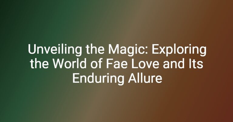 Unveiling the Magic: Exploring the World of Fae Love and Its Enduring Allure